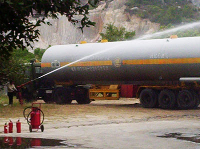 據(jù)了解,演練在市佳盟貿(mào)易有限公司貓山氣站舉行。下午4時,舉行液化氣罐“泄漏”事故模擬演練。氣站警報拉響,工作人員立即兵分四路,緊急搶險,切斷“泄漏”閥門,并對泄漏點進行堵漏、維修。隨后球形罐開啟噴淋系統(tǒng),工作人員將高壓水槍對停放在庫區(qū)的槽車進行降溫處理,5分鐘過后,液化氣罐泄漏點迅速修復,工作人員安全撤離現(xiàn)場。緊接著,進行滅火演練,將鋼瓶放在在指定的地方,模擬泄氣并著火燃燒,工作人員人員分批用干粉滅火器進行滅火。