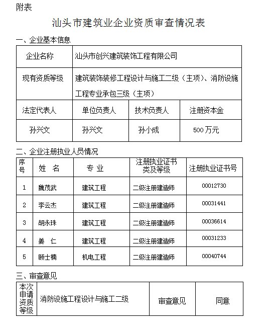 關(guān)于設(shè)計與施工資質(zhì)審查意見的公示汕住建公示〔2014〕26號