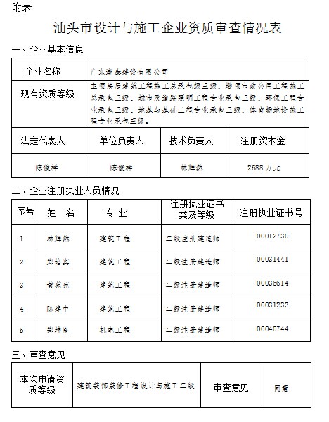 關(guān)于設(shè)計(jì)與施工資質(zhì)審查意見(jiàn)的公示汕住建公示〔2014〕31號(hào)