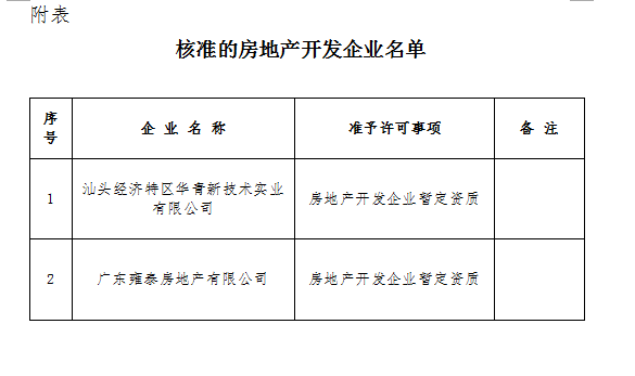根據(jù)《中華人民共和國(guó)行政許可法》、《中華人民共和國(guó)城市房地產(chǎn)管理法》和有關(guān)房地產(chǎn)開發(fā)企業(yè)資質(zhì)管理規(guī)定,現(xiàn)將經(jīng)我局審查核準(zhǔn)的房地產(chǎn)開發(fā)企業(yè)名單予以公布(見附表)。