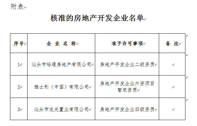 關(guān)于房地產(chǎn)開發(fā)企業(yè)資質(zhì)核準(zhǔn)結(jié)果的公告汕住建公告[2015]15號(hào)