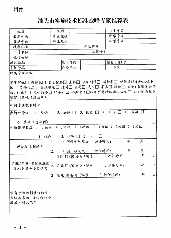 關(guān)于征集汕頭市實(shí)施技術(shù)標(biāo)準(zhǔn)戰(zhàn)略專家的通知汕質(zhì)監(jiān)函[2016]34號