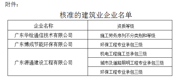 根據(jù)《中華人民共和國行政許可法》、《中華人民共和國建筑法》和有關(guān)建設(shè)工程企業(yè)資質(zhì)管理規(guī)定,現(xiàn)將經(jīng)我局審查核準(zhǔn)的建筑業(yè)企業(yè)名單予以公布(見附件)。