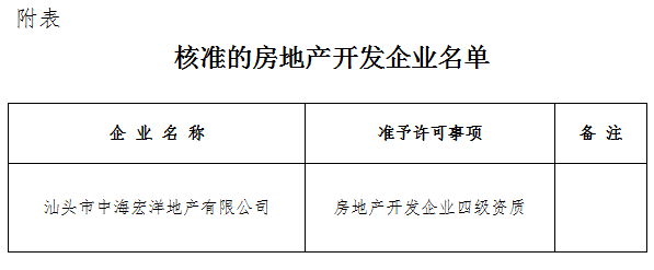 關(guān)于房地產(chǎn)開(kāi)發(fā)企業(yè)資質(zhì)核準(zhǔn)結(jié)果的公告汕住建公告〔2017〕14號(hào)