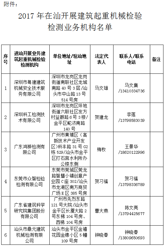 附件: 2017年在汕開展建筑起重機械檢驗檢測業(yè)務(wù)機構(gòu)名單