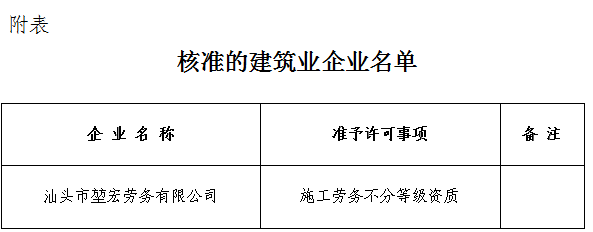 關(guān)于建筑業(yè)企業(yè)資質(zhì)核準結(jié)果的公告 汕住建公告〔2017〕55號