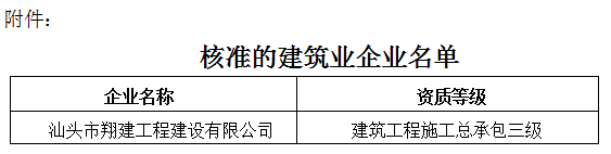 關(guān)于建筑業(yè)企業(yè)資質(zhì)核準(zhǔn)結(jié)果的公告汕住建公告〔2018〕35號(hào)