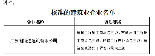 根據《中華人民共和國行政許可法》、《中華人民共和國建筑法》和有關建設工程企業(yè)資質管理規(guī)定,現(xiàn)將經我局審查核準的建筑業(yè)企業(yè)名單予以公布(見附件)。