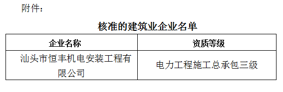根據(jù)《中華人民共和國行政許可法》、《中華人民共和國建筑法》和有關建設工程企業(yè)資質(zhì)管理規(guī)定,現(xiàn)將經(jīng)我局審查核準的建筑業(yè)企業(yè)名單予以公布(見附件)。