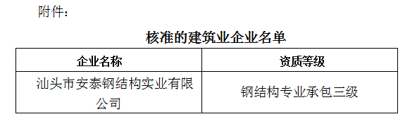 根據《中華人民共和國行政許可法》、《中華人民共和國建筑法》和有關建設工程企業(yè)資質管理規(guī)定,現(xiàn)將經我局審查核準的建筑業(yè)企業(yè)名單予以公布(見附件)。