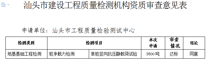 附件:汕頭市建設(shè)工程質(zhì)量檢測機(jī)構(gòu)資質(zhì)審查意見表