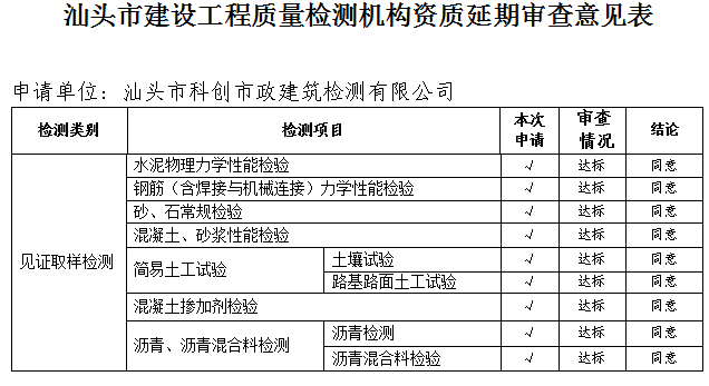 附件:汕頭市建設(shè)工程質(zhì)量檢測(cè)機(jī)構(gòu)資質(zhì)審查意見(jiàn)表