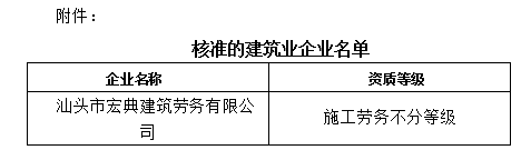 根據(jù)《中華人民共和國行政許可法》、《中華人民共和國建筑法》和有關(guān)建設(shè)工程企業(yè)資質(zhì)管理規(guī)定,現(xiàn)將經(jīng)我局審查核準(zhǔn)的建筑業(yè)企業(yè)名單予以公布(見附件)。