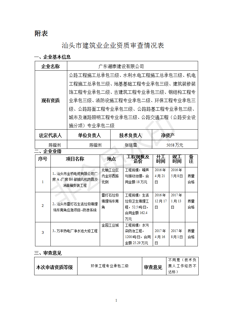 瀏覽次數(shù):4514按照《中華人民共和國行政許可法》規(guī)定以及《建筑業(yè)企業(yè)資質(zhì)管理規(guī)定》(住房城鄉(xiāng)建設(shè)部第22號(hào)令)、(住房城鄉(xiāng)建設(shè)部關(guān)于印發(fā)《建筑業(yè)企業(yè)資質(zhì)標(biāo)準(zhǔn)》的通知)(建市[2014]159號(hào))的要求,我局對近期申請建筑業(yè)企業(yè)資質(zhì)的廣東潮泰建設(shè)有限公司的申報(bào)材料進(jìn)行了審查,現(xiàn)將審查意見予以公示 (見附表) 。