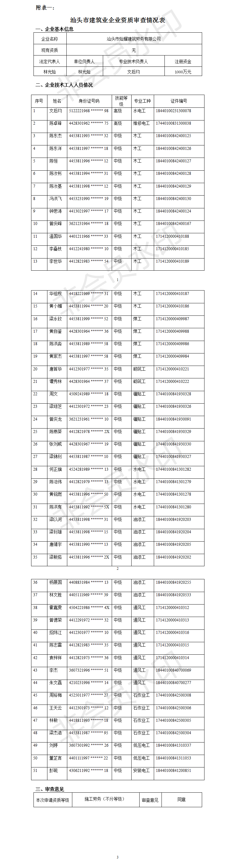 瀏覽次數(shù):4955按照《中華人民共和國(guó)行政許可法》規(guī)定以及《建筑業(yè)企業(yè)資質(zhì)管理規(guī)定》(住房城鄉(xiāng)建設(shè)部第22號(hào)令)、(住房城鄉(xiāng)建設(shè)部關(guān)于印發(fā)《建筑業(yè)企業(yè)資質(zhì)標(biāo)準(zhǔn)》的通知)(建市[2014]159號(hào))的要求,我局對(duì)近期申請(qǐng)建筑業(yè)企業(yè)資質(zhì)的汕頭市燦耀建筑勞務(wù)有限公司申報(bào)材料進(jìn)行了審查,現(xiàn)將審查意見(jiàn)予以公示 (見(jiàn)附表) 。