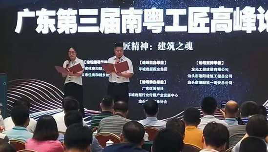 論壇為汕頭市潮陽建筑工程總公司、龍光工程建設(shè)有限公司、汕頭市達(dá)濠建筑總公司、廣東南華建設(shè)集團(tuán)有限公司、碧桂園集團(tuán)粵東區(qū)域公司等十多家企業(yè)頒發(fā)“南粵工匠傳承獎”和“南粵工匠創(chuàng)新獎”,并向南粵建筑行業(yè)發(fā)出“不忘初心,牢記使命”的倡議書。