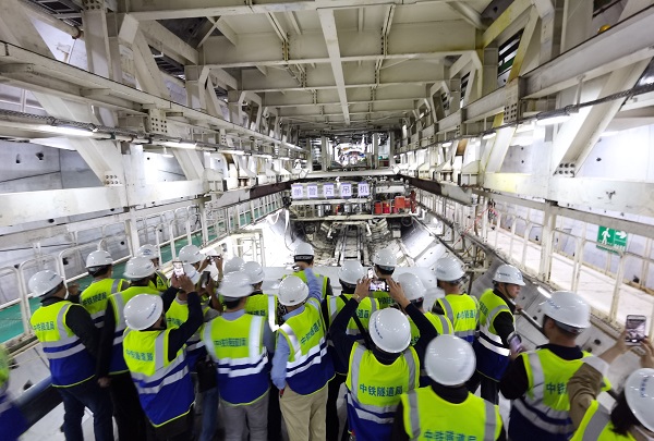 協(xié)會(huì)參觀人員戴上安全帽、穿上工作服跟隨施工人員到隧道井下施工現(xiàn)場體驗(yàn)“中國建造”的不易與創(chuàng)新,感受中國最大盾構(gòu)作業(yè)的“超級(jí)工程”。在海面之下的海底深處,巨大的盾構(gòu)機(jī)正在24小時(shí)不間斷地向前掘進(jìn)。在海底20多米下的盾構(gòu)施工現(xiàn)場,工人們熟練地用機(jī)器吊起各種設(shè)備,有條不紊地作業(yè)。由于盾構(gòu)作業(yè)要求連續(xù)推進(jìn)不能暫停,隧道施工人員每天24小時(shí)分兩班值守,確保盾構(gòu)機(jī)運(yùn)作不停機(jī)、順利掘進(jìn)。