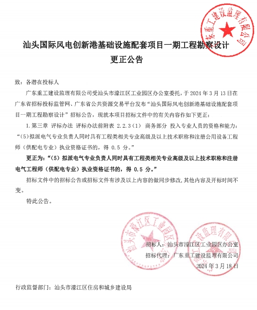 汕頭國際風(fēng)電創(chuàng)新港基礎(chǔ)設(shè)施配套項目一期工程勘察設(shè)計