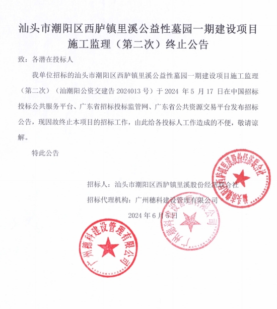 汕頭市潮陽區(qū)西臚鎮(zhèn)里溪公益性墓園一期建設項目施工監(jiān)理(第二次)