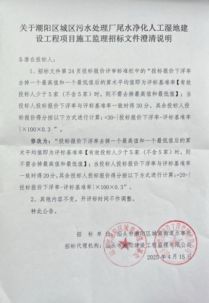潮陽區(qū)城區(qū)污水處理廠尾水凈化人工濕地建設(shè)工程項(xiàng)目施工監(jiān)理