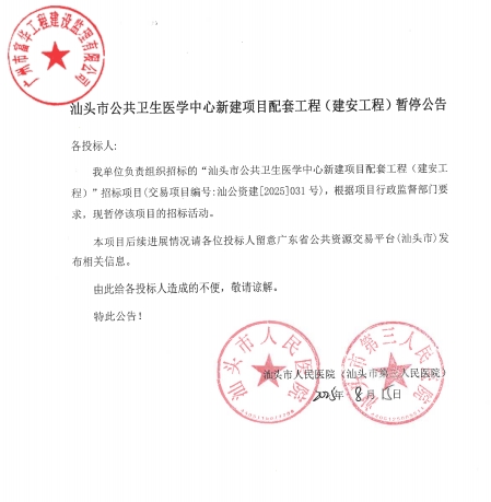 汕頭市公共衛(wèi)生醫(yī)學(xué)中心新建項目配套工程(建安工程)