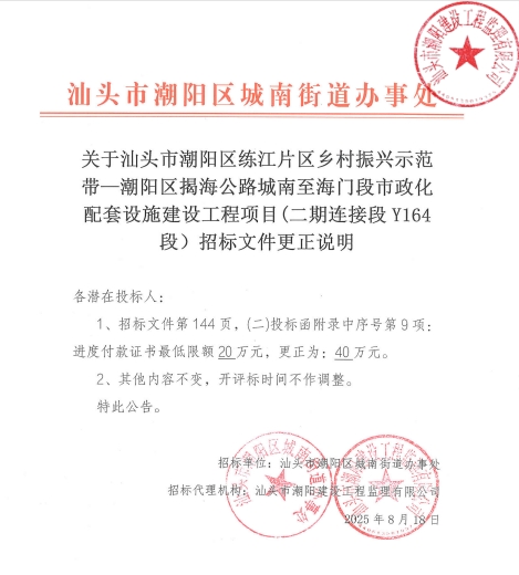 汕頭市潮陽(yáng)區(qū)練江片區(qū)鄉(xiāng)村振興示范帶—潮陽(yáng)區(qū)揭海公路城南至海門段市政化配套設(shè)施建設(shè)工程項(xiàng)目(二期連接段Y164段)