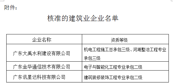 關(guān)于建筑業(yè)企業(yè)資質(zhì)核準(zhǔn)結(jié)果的公告